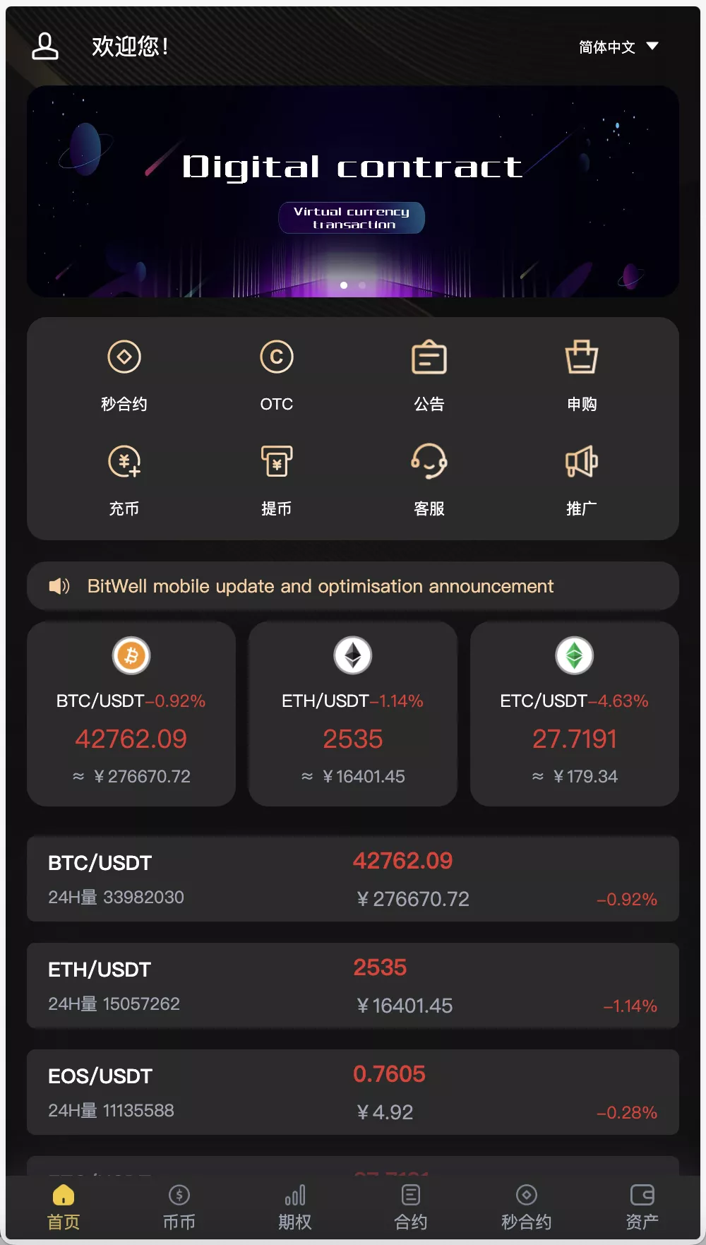 完整运营版BitWell开源交易所源码 – 多语言全功能交易系统,涵盖OTC、永续合约、期权、币币及秒合约交易,前后端一体交易所源码