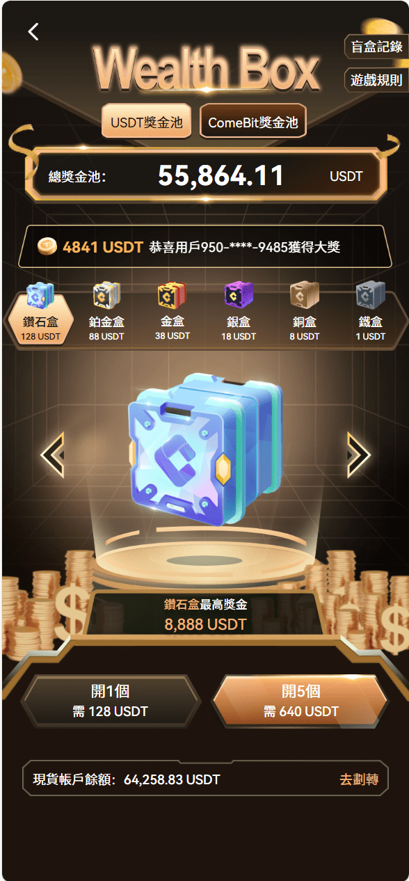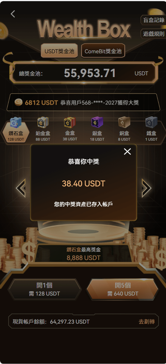 为了满足不同用户的投资需求,平台引入了多样化的交易玩法,包括申购认购、资产质押、盲盒抽奖、一元购等特色活动,让用户能够以更低门槛、更多方式参与数字金融市场。其中,一元购模式为用户创造了小投入博高收益的全新体验。