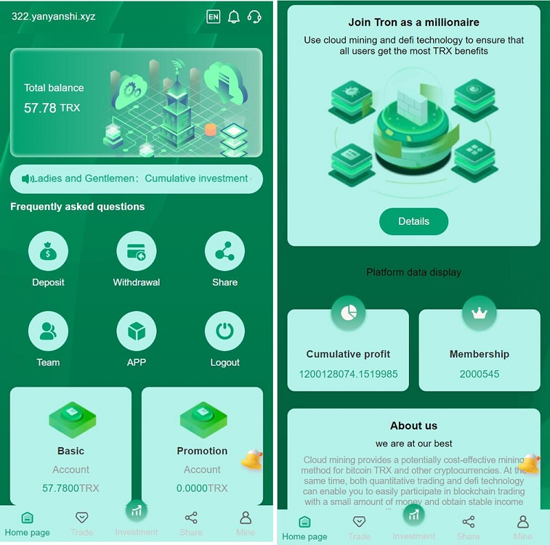 H5多语言理财TRX最新波场源码区块链投资系统程序自动钱包归集+代理 多国语言TRX投资理财系统源码,波场trx自动归集钱包,虚拟货币区块链投资源码 绿色全新TRX理财源码,全新UI,二开后全新功能,支持代理独立皮肤 声明:本站所有文章,如无特殊说明或标注,均为本站原创发布,如遇到任何问题点击右上角联系TG客服!
