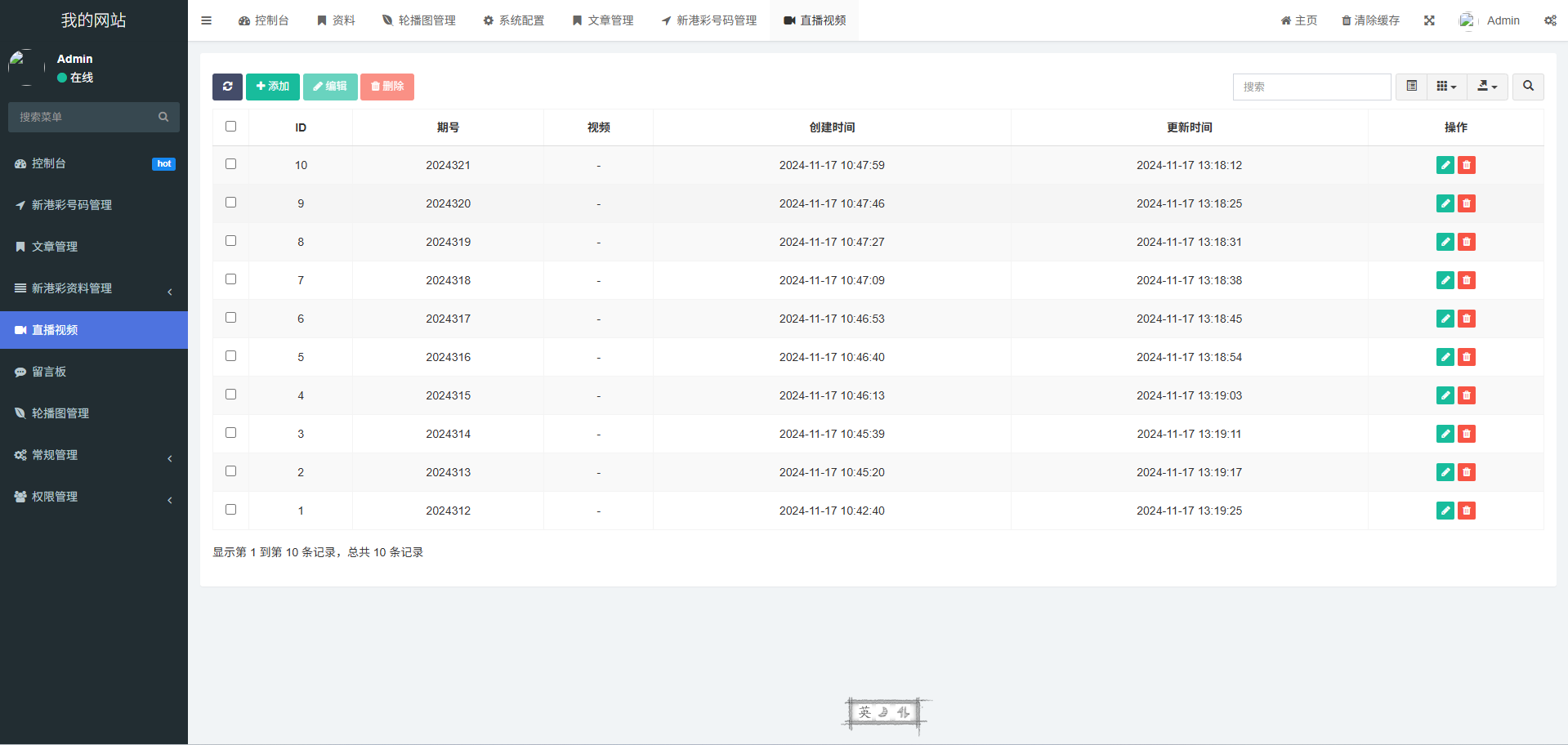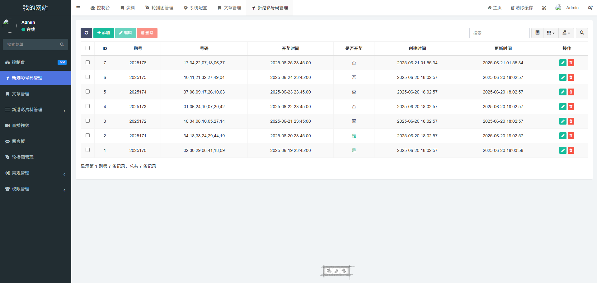 后台倒是显示有很多彩种,前端只有一个,编译后的没办法去修改,后台可以修改开奖、上传图库,感觉前端是阉割版