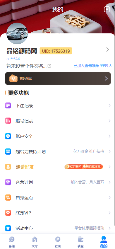 3:新增了加了个人报表功能,可以查询当前用户的个人报表,投注记录,账户流水,及时返水等!