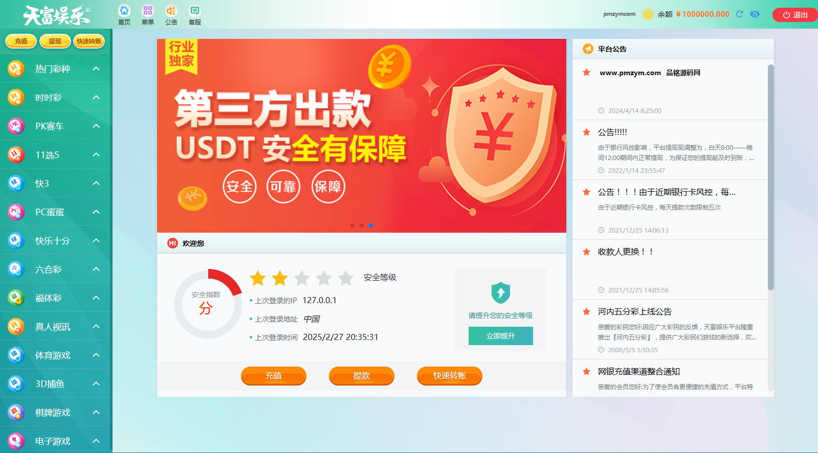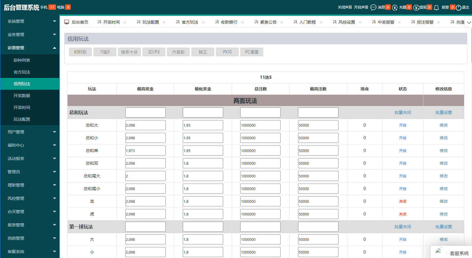 后台功能管理比较强大,可控,可改玩法,改赔率等等!