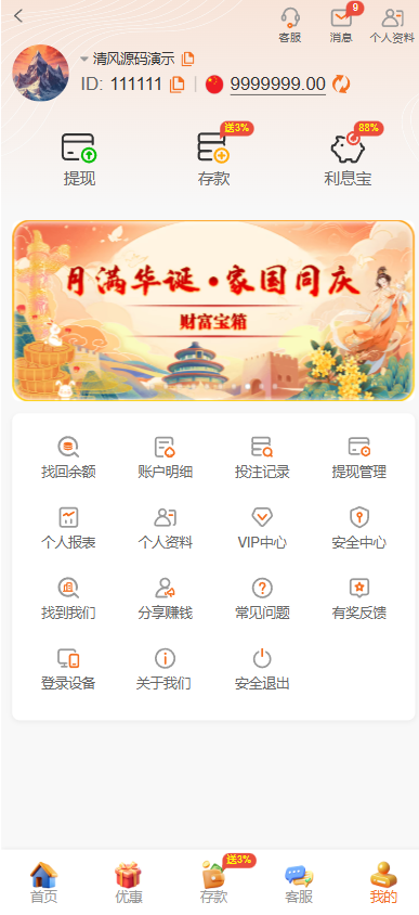- 集成主流支付接口,支持各类线上充值与提现,兼容市面上绝大多数支付渠道,方便用户资金流转。