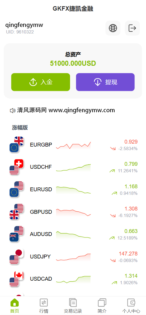 GKFX多语言期货外汇源码/黄金白银贵金属交易源码/前端vue纯源码+后端PHP/全开源/11国语言