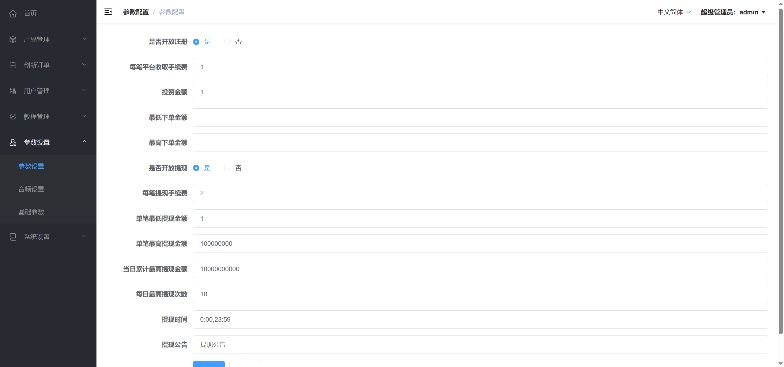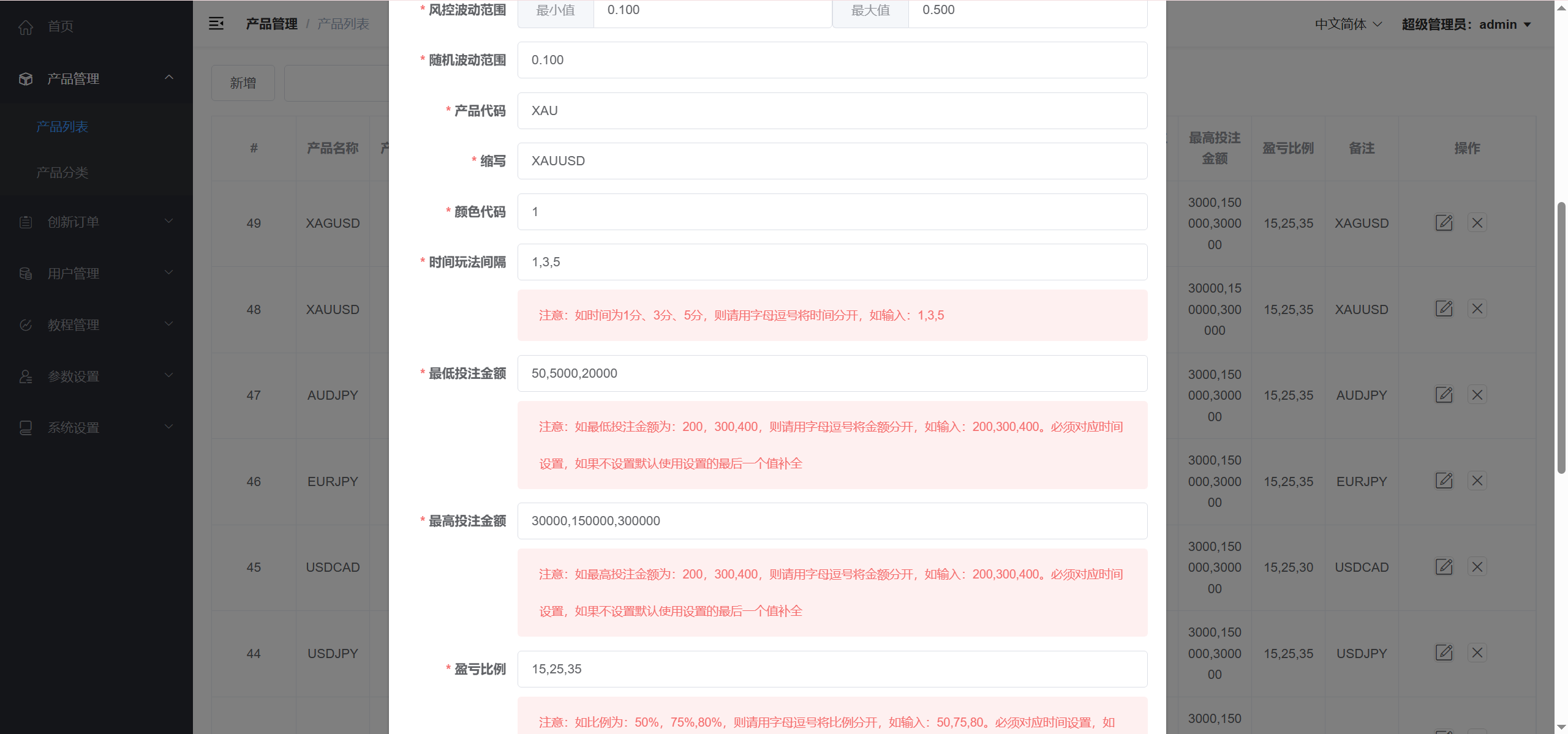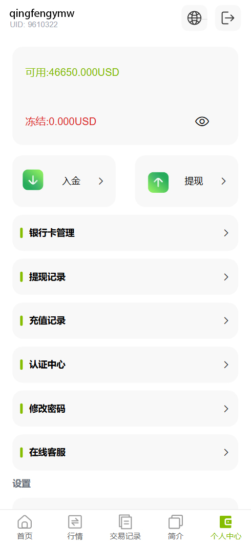功能也比较单一,下单页面就是买涨跌,没有挂单交易这些功能,也没有邀请分销、USDT充值的功能,后台可以对订单进行盈亏控制,产品也有风控设置