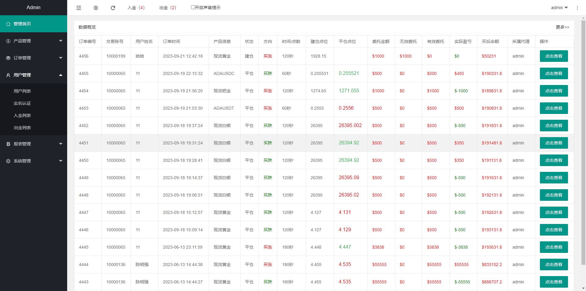 【海外单语言微交易源码】运营版微盘源码/虚拟币/期货黄金白银/交易系统源码/微交易源码/代理后台/用户风控