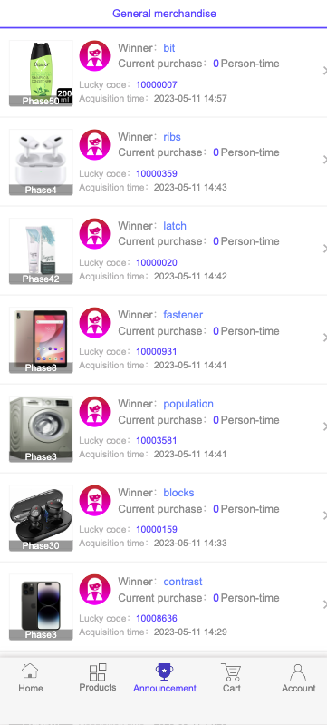 每期商品达到所需人次即可自动开奖,倒计时30秒揭晓后自动开始下一期