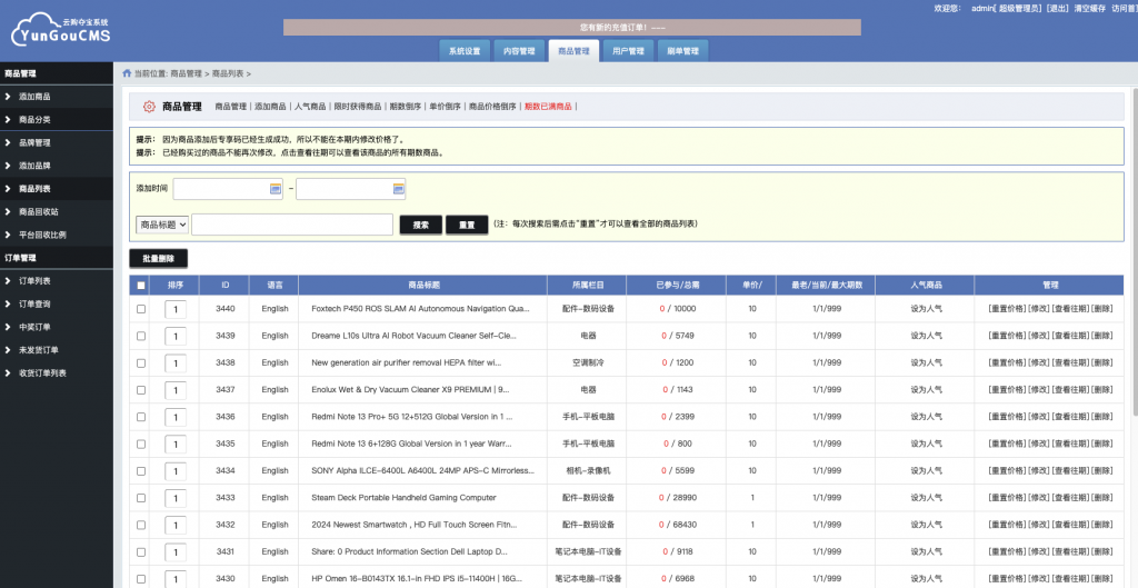 新版YunGou云购夺宝源码/海外版一元购系统/多语言云购竞猜